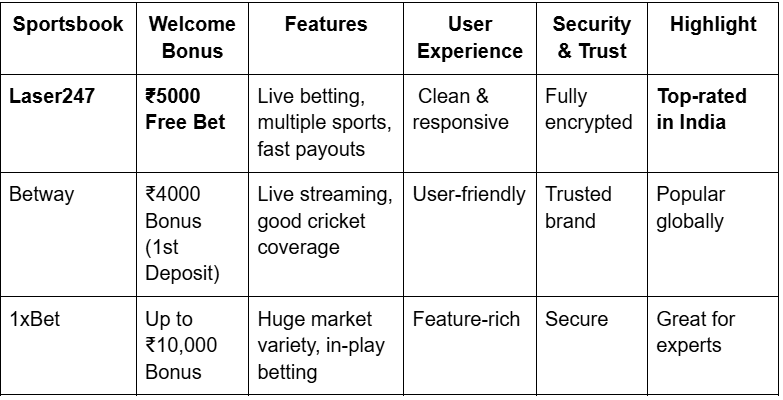 - Laser247: An up-and-coming platform in India conducive to safe betting and pro-user experience.